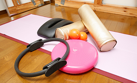ボールやセラバンド、ピラティスリングを補助として使うこともします。